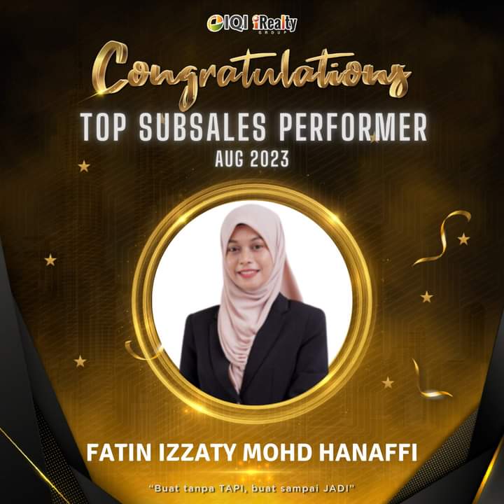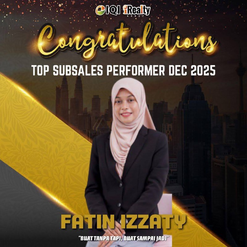 Hai! Nama saya Fatin Izzaty, Ejen Hartanah Berdaftar (REN 42545) sepenuh masa di IQI Realty Sdn Bhd. Berkecimpung dalam dunia hartanah sejak tahun 2020 sehingga sekarang.
